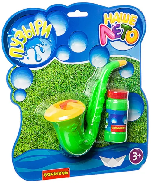 В наборе: раствор мыльных пузырей (45 мл), саксофон.
