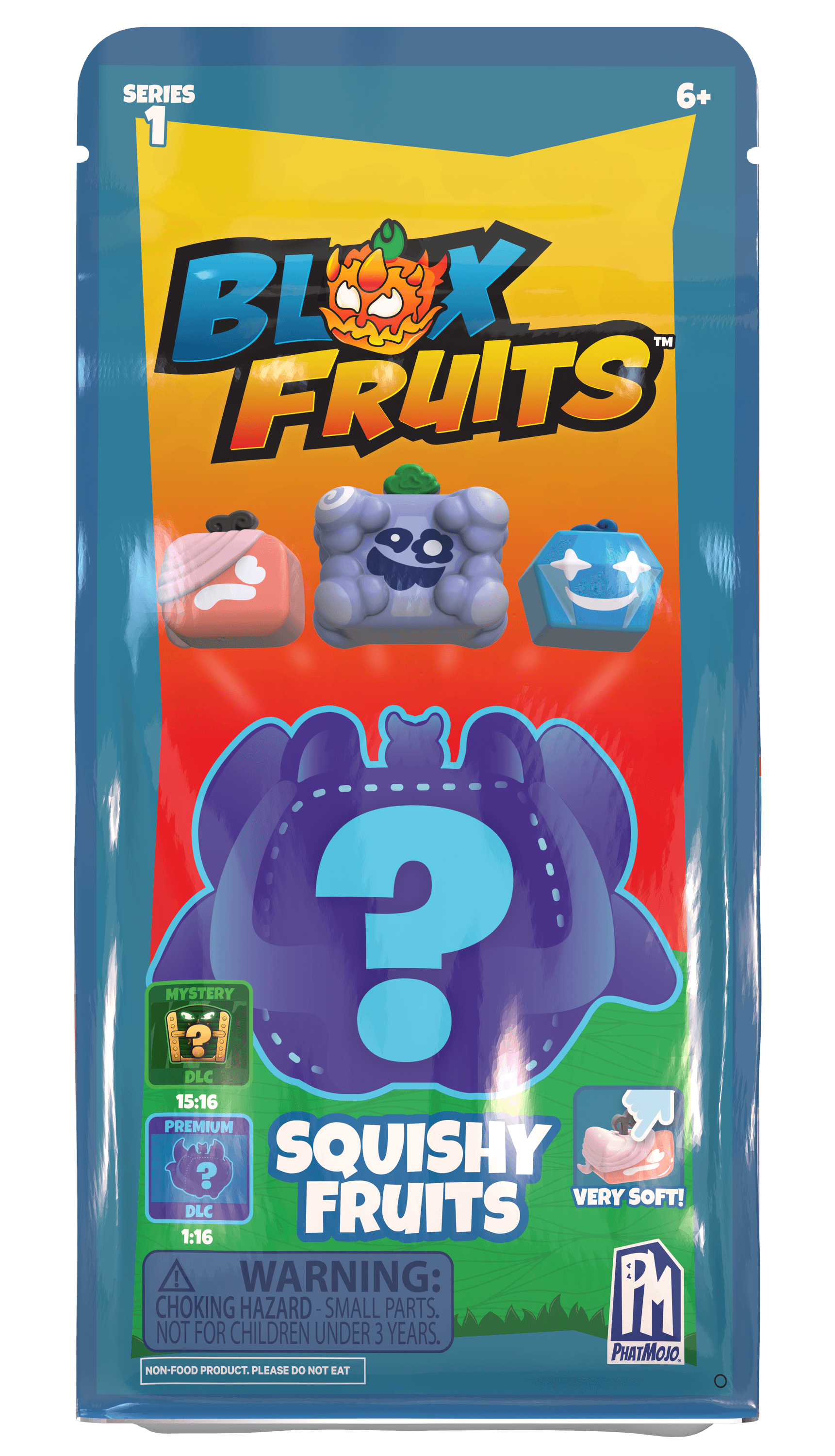 Сжимай, мни и собирай с Blox Fruits Squishy Figures - Series 1! В каждой слепой упаковке одна загадочная мягкая фигурка фрукта, вдохновлённая популярной игрой Roblox. Изготовлены из ультрамягких материалов для приятных ощущений, эти коллекционные игрушки весело использовать для игры и выставки. Каждый пакет содержит DLC-код для эксклюзивного внутриигрового контента, с шансом 1 к 6 найти Premium Fruit или даже редкий Mystery Fruit!