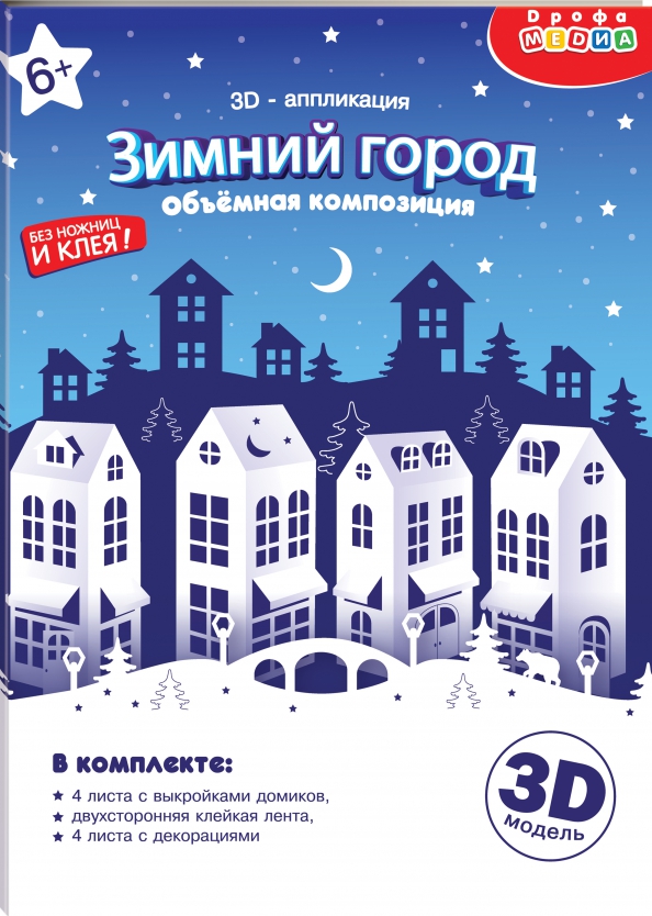 Объёмная аппликация "Зимний город. Объёмная аппликация" - отличный набор для творчества, который украсит вашу комнату. Детали из перламутрового картона, создадут предновогоднее настроение и погрузят в атмосферу волшебства заснеженного города.