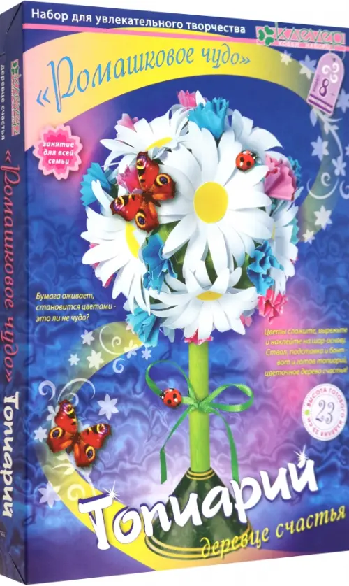 Деревце-топиарий могут сделать дети от 8-ми лет, - это несложно и увлекательно: сначала изготавливаются из бумаги цветы, а к ним дополнительные детали: бумага нарезается, складывается, подрезается или скручивается. Затем из картона складывается основа для кроны и изготавливается ствол и подставка. Собрав все картонные детали, украшаем шарообразную крону цветами и бабочками, божьими коровками; а ствол - яркой атласной лентой. Декоративные деревья, созданные в технике «Бумагопластика», словно из волшебного сада, появятся у вас в доме и будут украшать его круглый год!