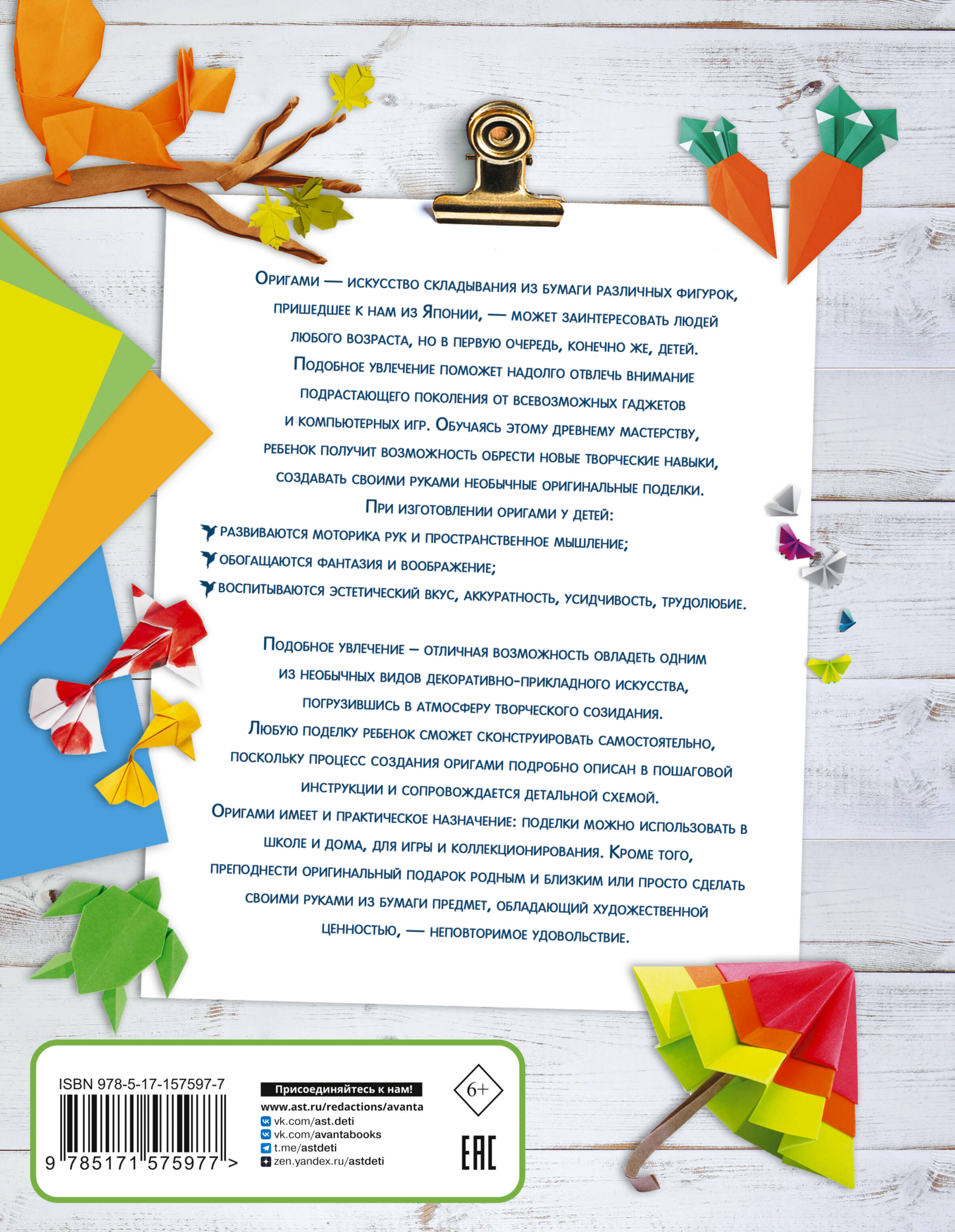 Оригами - прекрасный способ привить ребенку с раннего возраста любовь к искусству, развить у него тонкий эстетический вкус, научить познавать окружающий мир через призму творчества. Эта книга научит его самостоятельно складывать из бумаги различные фигурки, создавать картины с элементами аппликации в технике оригами, своими руками изготавливать предметы, имеющие художественную ценность и практическое применение. Данное издание ориентировано в первую очередь на детей 8-10 лет, благодаря разнообразию представленных моделей оригами на различные темы оно заинтересует и мальчиков, и девочек. Процесс создания каждой бумажной фигурки подробно описан в пошаговой инструкции и сопровождается детальной схемой, понятной юным мастерам оригами. Кроме того, в книге приведены удивительные факты об окружающем мире, которые помогут детям расширить кругозор. Для младшего школьного возраста.| Издательство | ИЗДАТЕЛЬСТВО "АСТ" |