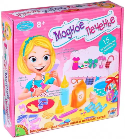 Тем, кто мечтает удивить родителей и друзей собственноручно приготовленными кондитерскими шедеврами, мы предлагаем скорее открыть игровой набор «Модное печенье»! В нем есть все для того, чтобы ребенок самостоятельно смог приготовить вкусные, красиво украшенные сладости в виде самых разных модных вещей и аксессуаров. Вкус у такого печенья может быть разным - все зависит от того, что будет добавлено в тесто: ванилин, шоколад или другой наполнитель по своему желанию. Украсить сладости тоже можно по-разному, в этом юному кондитеру помогут рекомендации и яркие картинки в брошюре, а также собственная фантазия.