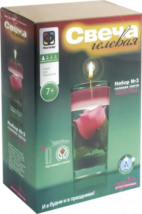 Состав набора: тюбик геля, стеклянный стакан, фитиль, цветной песок, декоративный цветок.