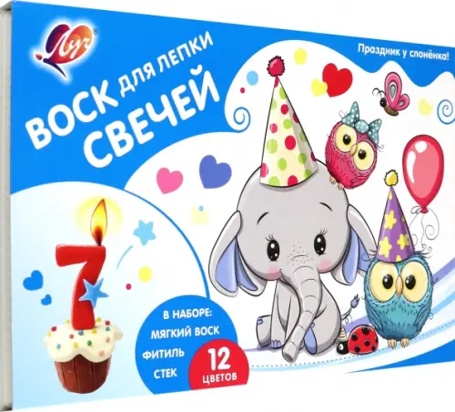 Набор воска для лепки свечей Праздник у слоненка, 12 цветов