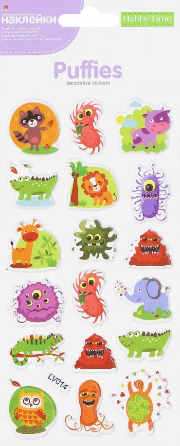 Наклейки объемные "ВЕСЕЛЫЕ ЗВЕРУШКИ-1" 3 вида (2-151/01)