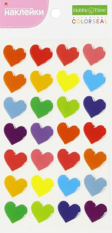 Наклейки объемные Радужные сердечки, 10 видов в ассортименте
