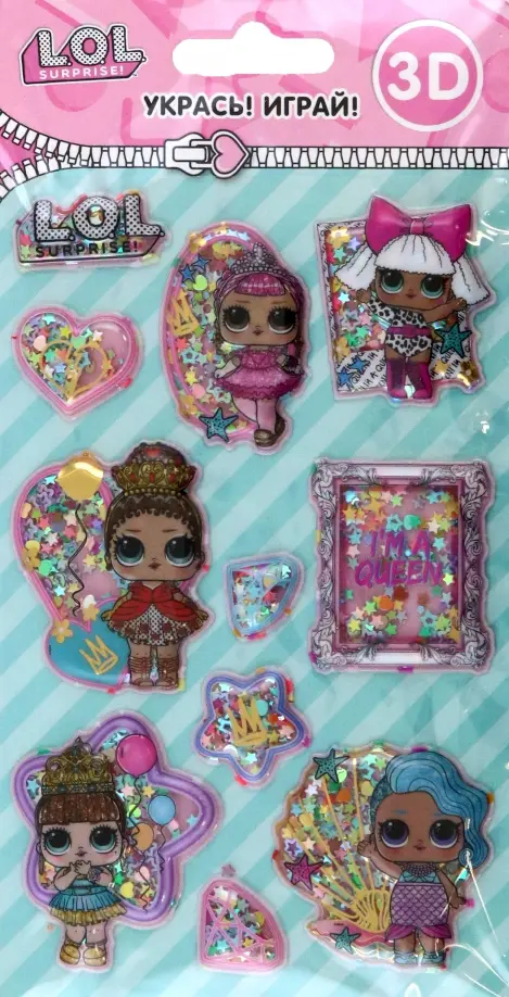 Наклейки объемные с конфетти. Шейк Королевы