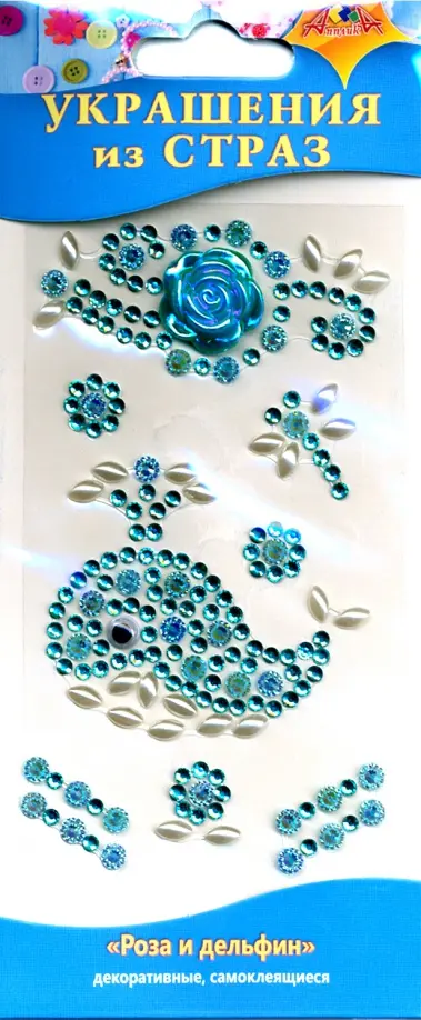 Набор для творчества. "Декоративные украшения из страз". Из цветных страз разной формы, а также из пуговиц собраны фигурки, имеющие клеевой слой. В каждом наборе фигурки определенной цветовой гаммы. Фигурки легко отделяются от подложки и могут быть приклеены на гладкую ровную поверхность. В качестве декора можно использовать и отдельные стразы. Упаковка - ПЭТ пакет с картонным вкладышем и европопдвесом.