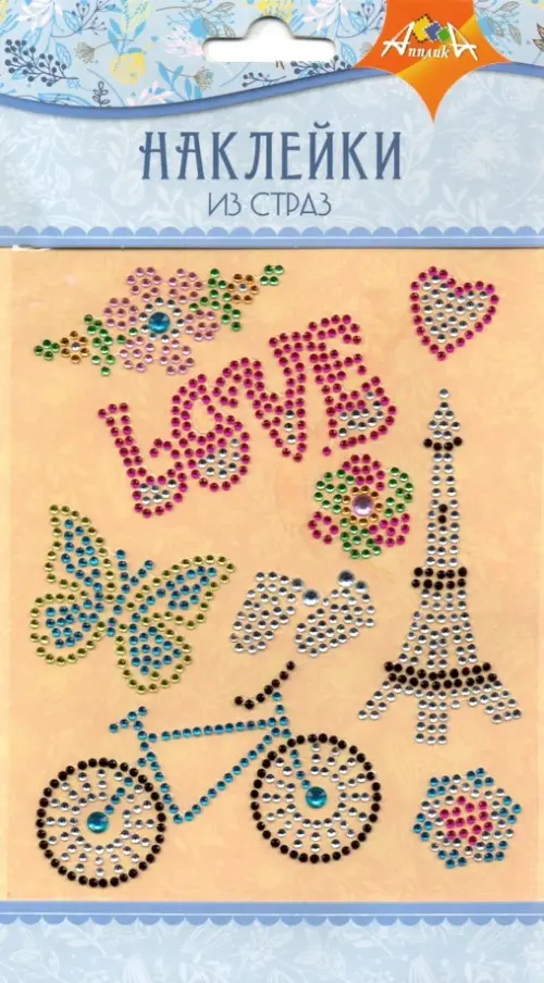 Набор для творчества. Декоративные наклейки из страз. Из цветных страз собраны фигурки, имеющие клеевой слой. В каждом наборе фигурки определенной тематики, а также небольшие декоративные элементы. В ассортименте представлены: "Мишки", "Звездочки", Бабочки", "Кошечки", "Сердечки". Фигурки легко отделяются от подложки и могут быть приклеены на гладкую ровную поверхность. Упаковка - ПЭТ пакет с картонным вкладышем и европодвесом.
