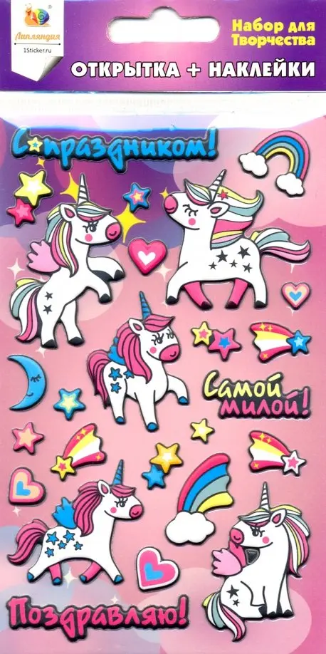 Набор наклеек для создания открыток "Единорог"