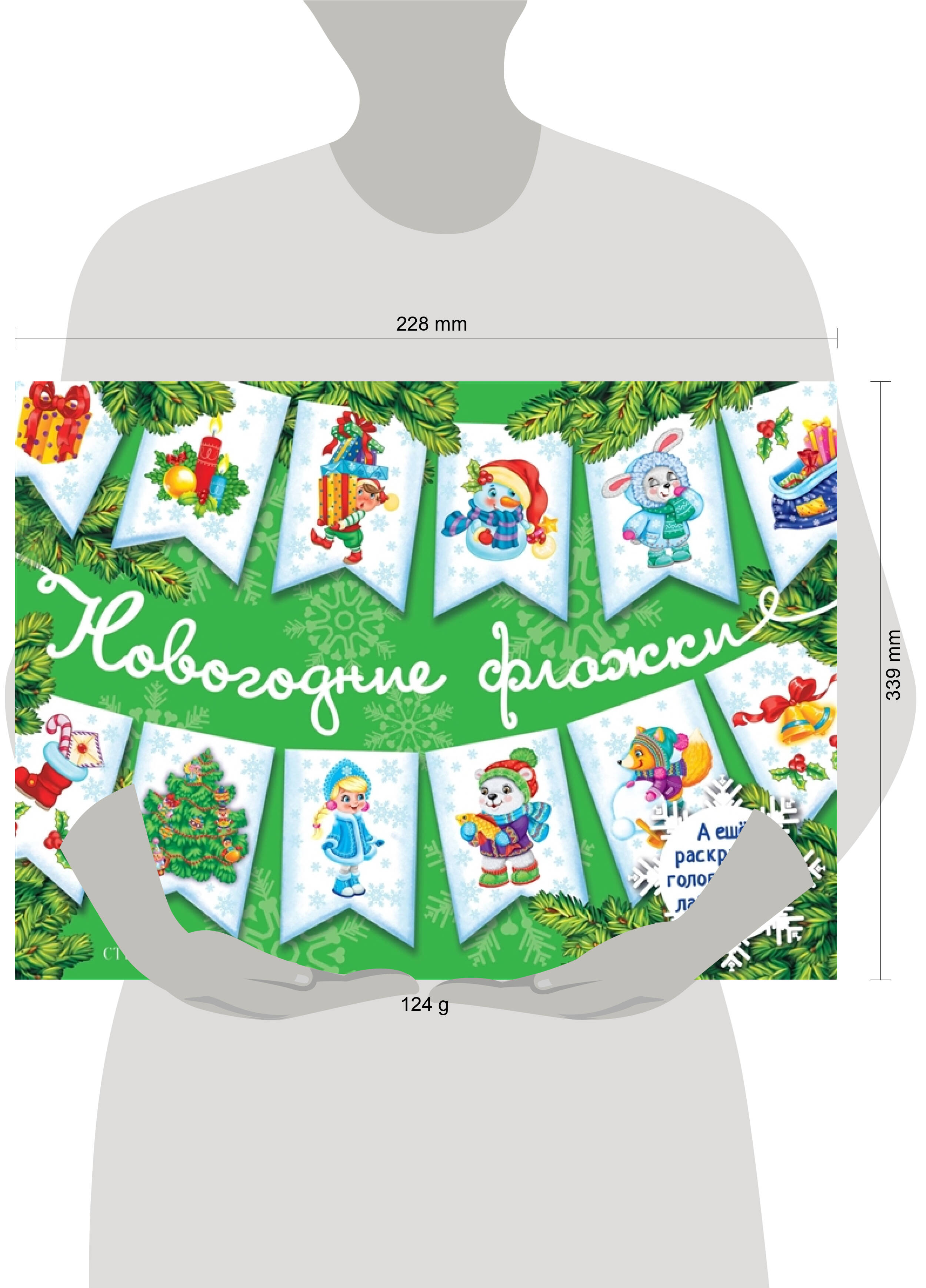 В этой книжке вы найдете выкройки красивых и ярких флажков, из которых легко и просто сделать новогоднюю гирлянду. Для этого понадобятся лишь ножницы, клей и прочная нитка. Кроме выкроек, на страничках книжки вас ждут раскраски, лабиринты, увлекательные задания и стихи. Создайте новогодние украшения своими руками. Подарите малышу радость творчества! Счастливого Нового года! Для детей дошкольного возраста.