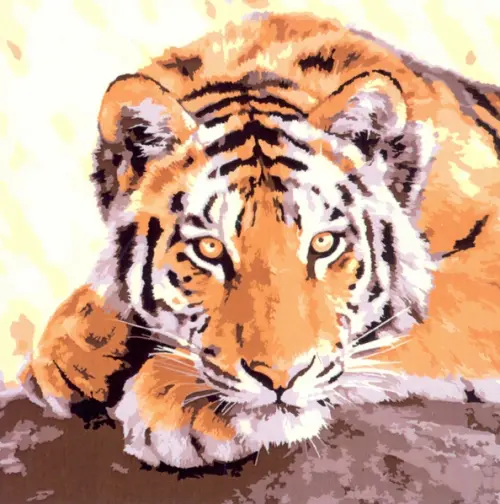 Холст с красками. Милый отдыхающий тигр