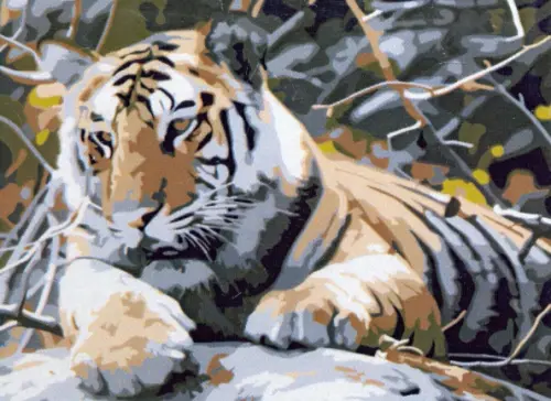 Холст с красками "Рисование по номерам. Тигр на камне", 22х30 см.