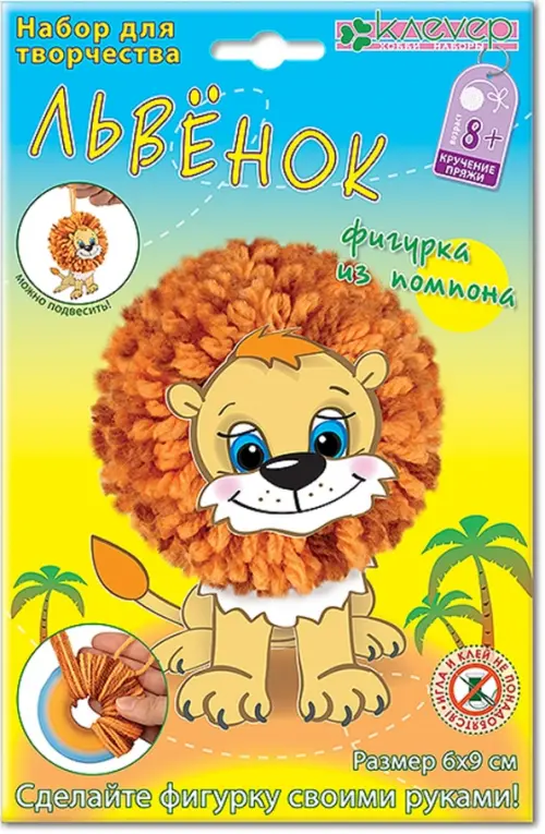 Состав набора: пряжа, картонные шаблоны для помпона, картонные детали, двусторонняя клейкая лента (скотч), инструкция.