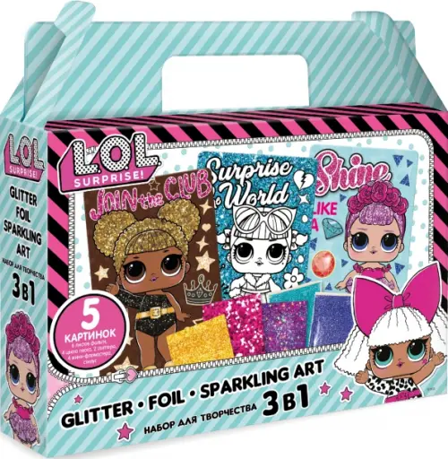 В наборе: 5 картинок, переливающаяся фольга, искрящийся песок и глиттер, фломастеры и стилус.