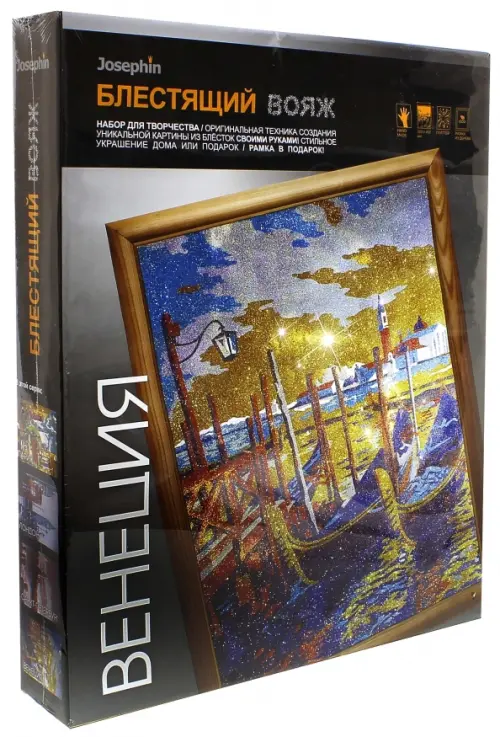 В наборе есть все необходимое, чтобы создать сияющую картину из блесток с изображением своего любимого города. А если настроение изменилось, то