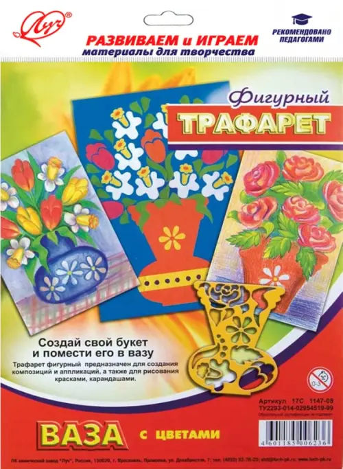 Трафарет фигурный предназначен для создания композиций и аппликаций, а также для рисования красками, карандашами.