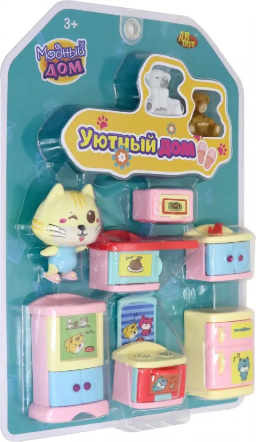 Набор мини-мебели. Уютный дом. Кухня, с голубым котиком