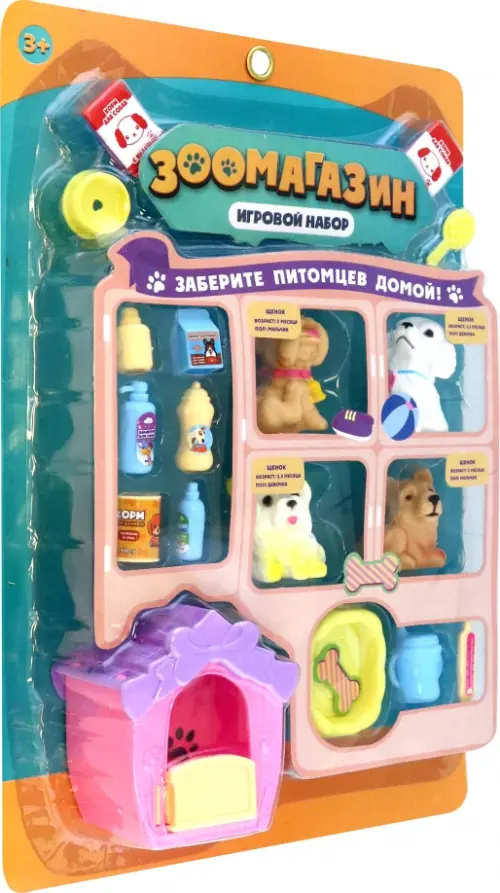 Набор игровой Зоомагазин, 4 собачки и игровые предметы