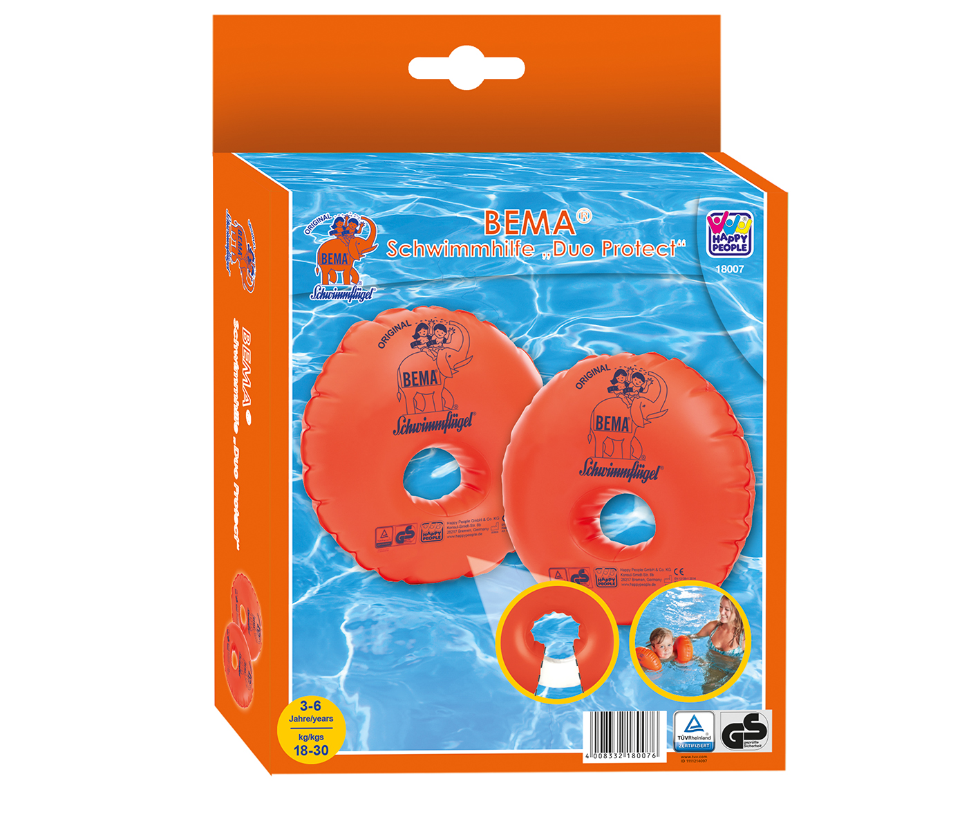 Нарукавники для плаванья с двойной защитой, размер 15х25 см. Максимальный вес ребенка 30 кг. Подходит для детей от 3 до 6 лет.
