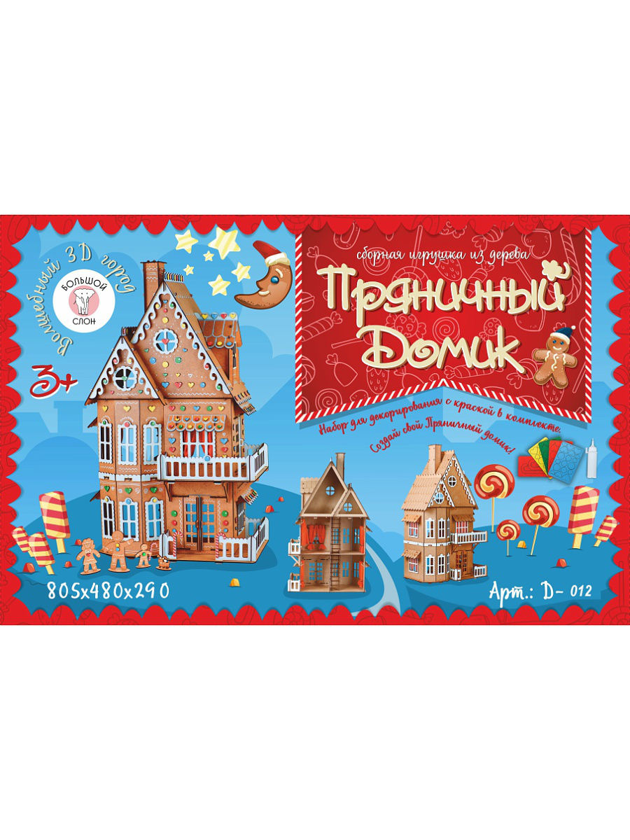 В коробке вы найдете резные элементы для сборки дома и схематичную инструкцию.