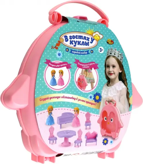 Замечательный чемоданчик с игрушками из серии «В гостях у куклы» от бренда ABtoys обязательно станет любимой игрушкой маленькой девочки. Чемоданчик выполнен в форме очаровательного совенка, в розовом цвете. Внутри чемоданчика находятся две куколки-принцессы в длинных платьях и различные предметы мебели, которые девочка расставит, создав уютную обстановку. Поиграв, все предметы можно сложить назад в чемоданчик. Благодаря его компактному размеру и удобной ручке для переноски его всегда можно взять с собой в любую поездку или на прогулку.