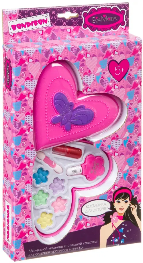 Набор "Косметичка-сердце" в яркой коробочке с изображением бабочки специально создан для юных принцесс. Маленькая модница, пользуясь косметикой, учится быть взрослой и красивой, подражая маме. Подарите девочке свой собственный набор декоративной косметики и научите делать красивый макияж!