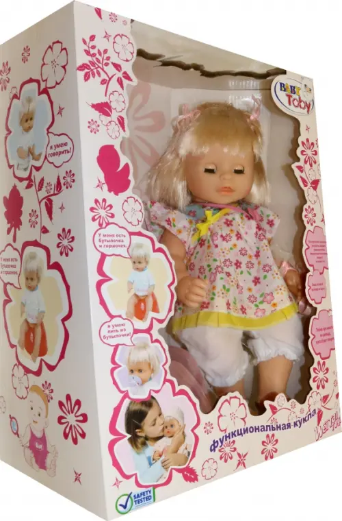 Этот реалистичный малыш обязательно понравится вашему ребенку! Игровой пупс выглядит, как настоящий малыш. В набор входит функциональный пупсик, бутылочка для кормления и один памперс. Пупса можно покормить с тарелочки, он писает и может говорить. Игра с такой куклой развивает чувство ответственности и заботы.