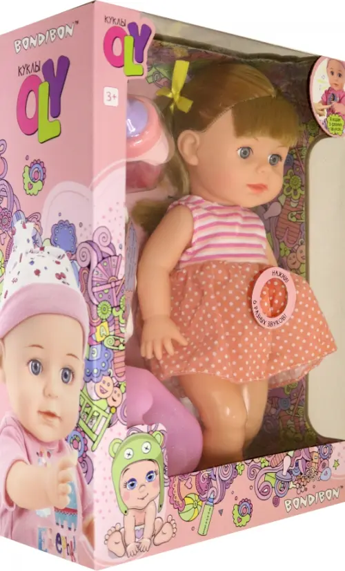Кукла OLY - это очаровательная малышка, которая непременно завоюет сердце любой девочки. У нее забавное личико и милый костюмчик, который можно снимать и надевать. У куклы двигаются ручки, ножки, а еще она умеет пить из бутылочки и ходить на горшок! Когда кукла недовольна, она плачет, а еще она может издавать другие звуки и даже произносить слова!