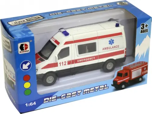 Игрушечная машинка-микроавтобус «Скорая помощь» выполнена весьма реалистично и детализировано. В такой машине можно перевозить к нужному месту целую бригаду врачей. Соответствующий дизайн машинки не позволит усомниться в том, что она относится к автопарку медицинской службы. Дверцы у машинки открываются.