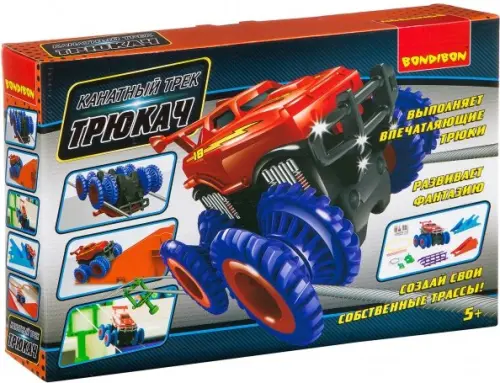 Состав набора: машинка, гибкая трасса, препятствие "Волна", препятствие "Трамплин", препятствие "Брусья", канатная трасса, набор красочных наклеек, инструкция.