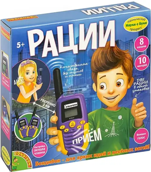 Со специальным переговорным устройством - набором раций с ЖК-дисплеем от Bondibon, ребенок погрузится в захватывающую игру, сможет держать связь с другом или родителями на расстоянии до 2 км, играя в шпионов или проходя квесты.