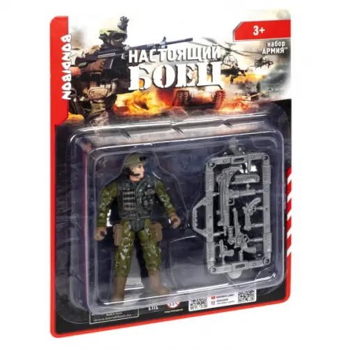 В комплекте: солдатик, набор из оружия: автомат, 3 вида пистолетов, мобильный телефон. Рекомендуемый возраст 3+.