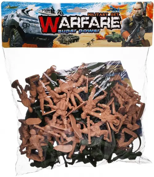 В составе набора от бренда Junfa входят 60 фигурок солдатиков двух цветов, застывших в разных позах, боевой самолет - 1 шт., боевой вертолет - 1 шт.
