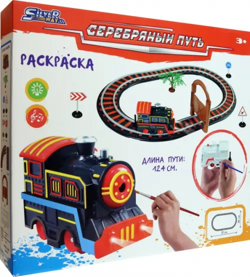 Серебряный путь - это набор не только для юных машинистов, но и художников! В комплекте - паровоз, корпус которого можно раскрасить по своему желанию, и 6 ярких красок. В помощь художникам - кисточка и стаканчик для разбавления красок. Когда поезд будет раскрашен, можно отправляться в путешествие!