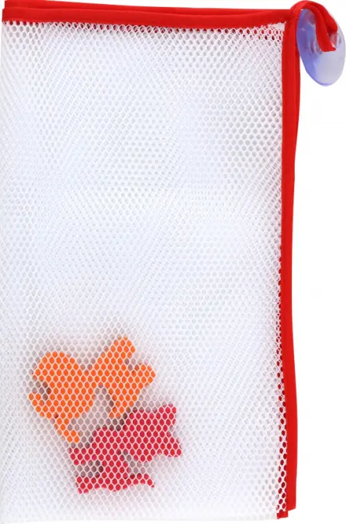Сетчатая сумочка для хранения игрушек для купания. Сетку можно прикрепить к кафельной стене ванной благодаря удобным присоскам. Сумочка-сетка позволяет сохранить игрушки в чистоте и сухости.