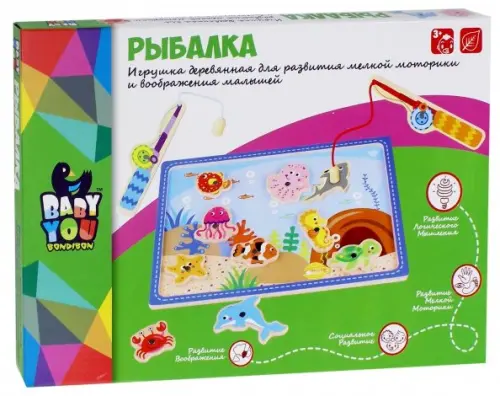 Игрушка-рыбалка изготовлена из экологически чистого материала древесины. Игрушка способствует развитию образного и логического мышления, ловкости, координации движений, усидчивости и мелкой моторики рук.