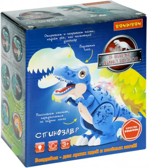 Игрушка изготовлена из безопасных материалов высокого качества. Спинозавр от Bondibon - отличный подарок для девочек и мальчиков от 3 лет.