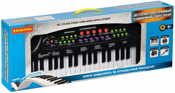 Синтезатор детский "Клавишник" с микрофоном и блоком питания ТМ Bondibon познакомит ребенка с миром музыки, позволит самостоятельно учиться играть на синтезаторе, развивая музыкальный слух, способствуя гармоничному развитию с малых лет. Компактный синтезатор не займет дома много места, поэтому его очень удобно использовать в качестве домашнего музыкального инструмента. Клавиатура синтезатора состоит из 37 клавиш, одна колонка обеспечивает качественный монозвук, в комплекте синтезатора микрофон, питание инструмента возможно от сети 220 В или 4 батареек АА 1,5В (в комплект не входят).
