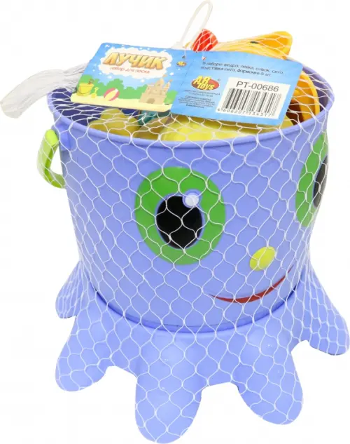 Песочный игровой набор "Лучик" имеет в комплекте 11 предметов различных форм и размеров.