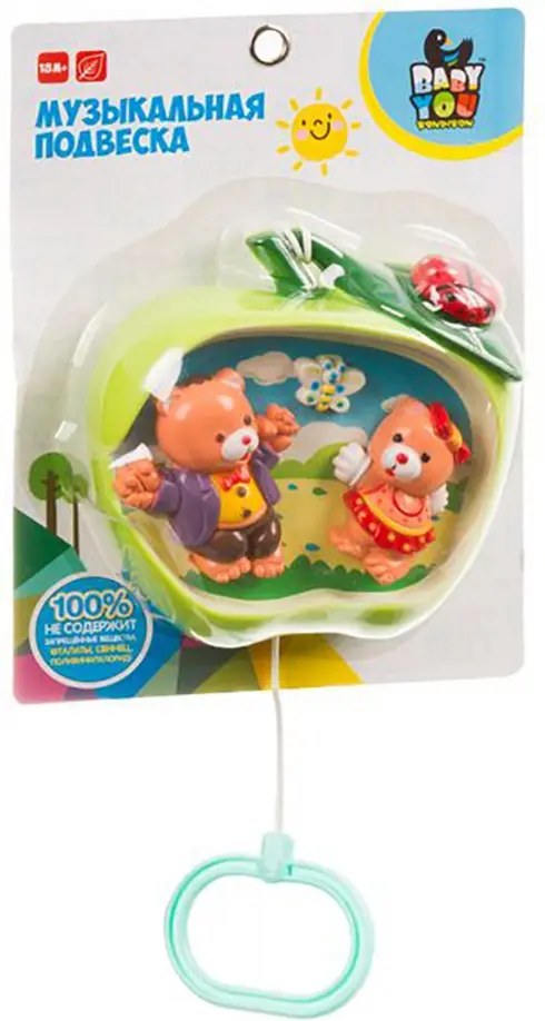 Потяните за веревочку и музыкальная подвеска воспроизведет нежную мелодию, которая поможет крохе успокоиться и легче уснуть. Во время воспроизведения двигаются медведи и бабочка.