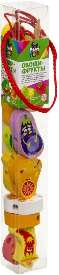 Набор бусин в виде овощей и фруктов, изготовленных из экологически чистого материала - древесины.