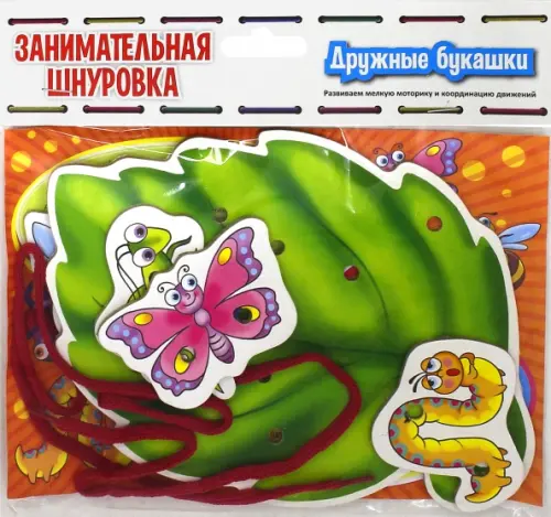 В наборе: игровое поле, 5 фигурок с отверстиями, цветной шнурок длиной 100 см, инструкция.