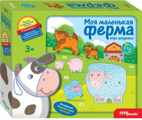 Игра из дерева "Моя маленькая ферма" - развивающая логическая игра-шнуровка. Она поможет развить мелкую моторику, глазомер и ловкость. Также здесь ребёнок сможет познакомиться с домашними животными, которые живут на ферме.