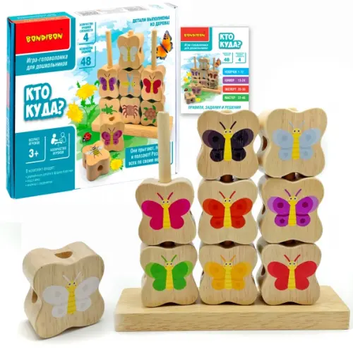 В комплект входят: деревянные детали, подставка, книжка с заданиями.
