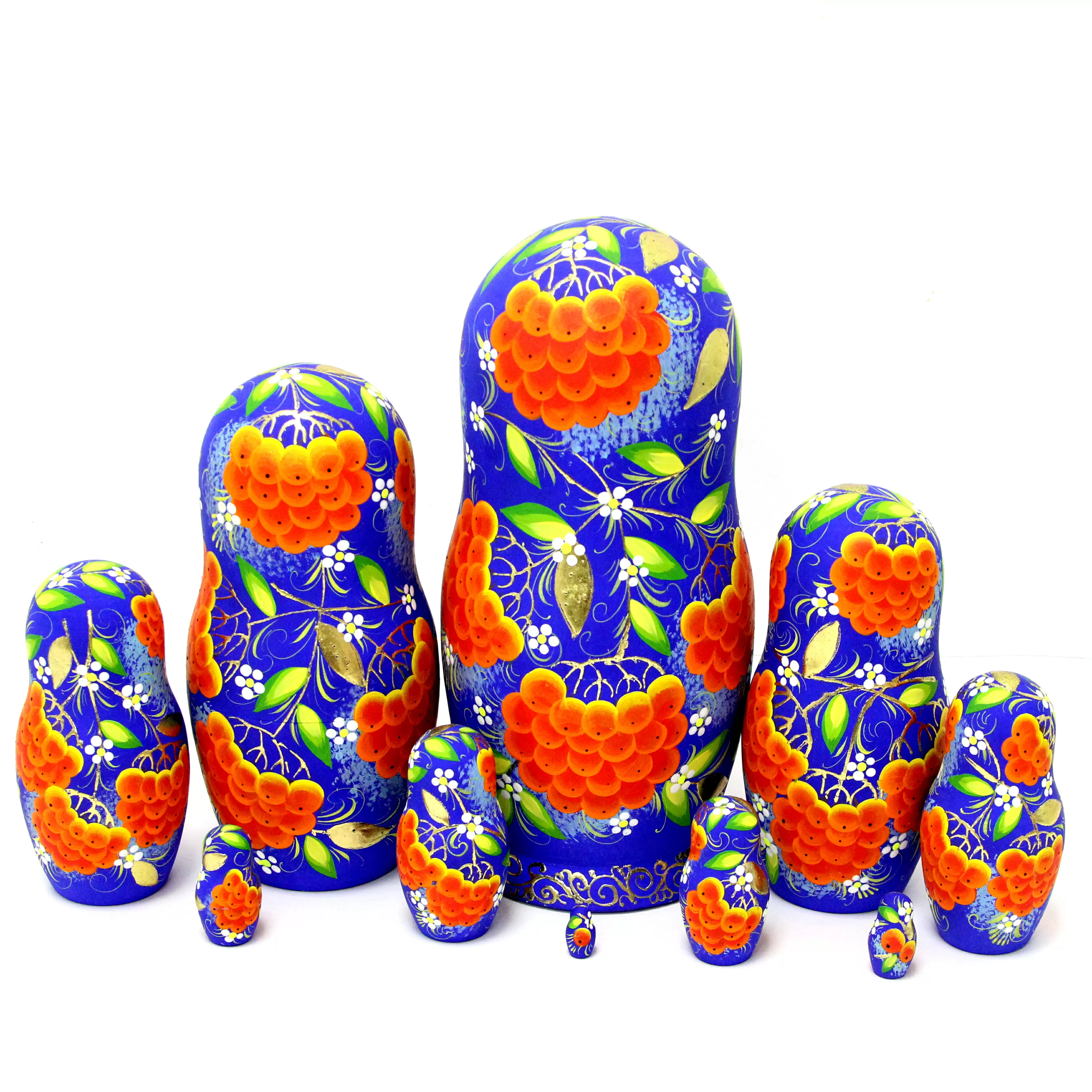 Матрешка Гроздья рябины на синем 10 м 25 см