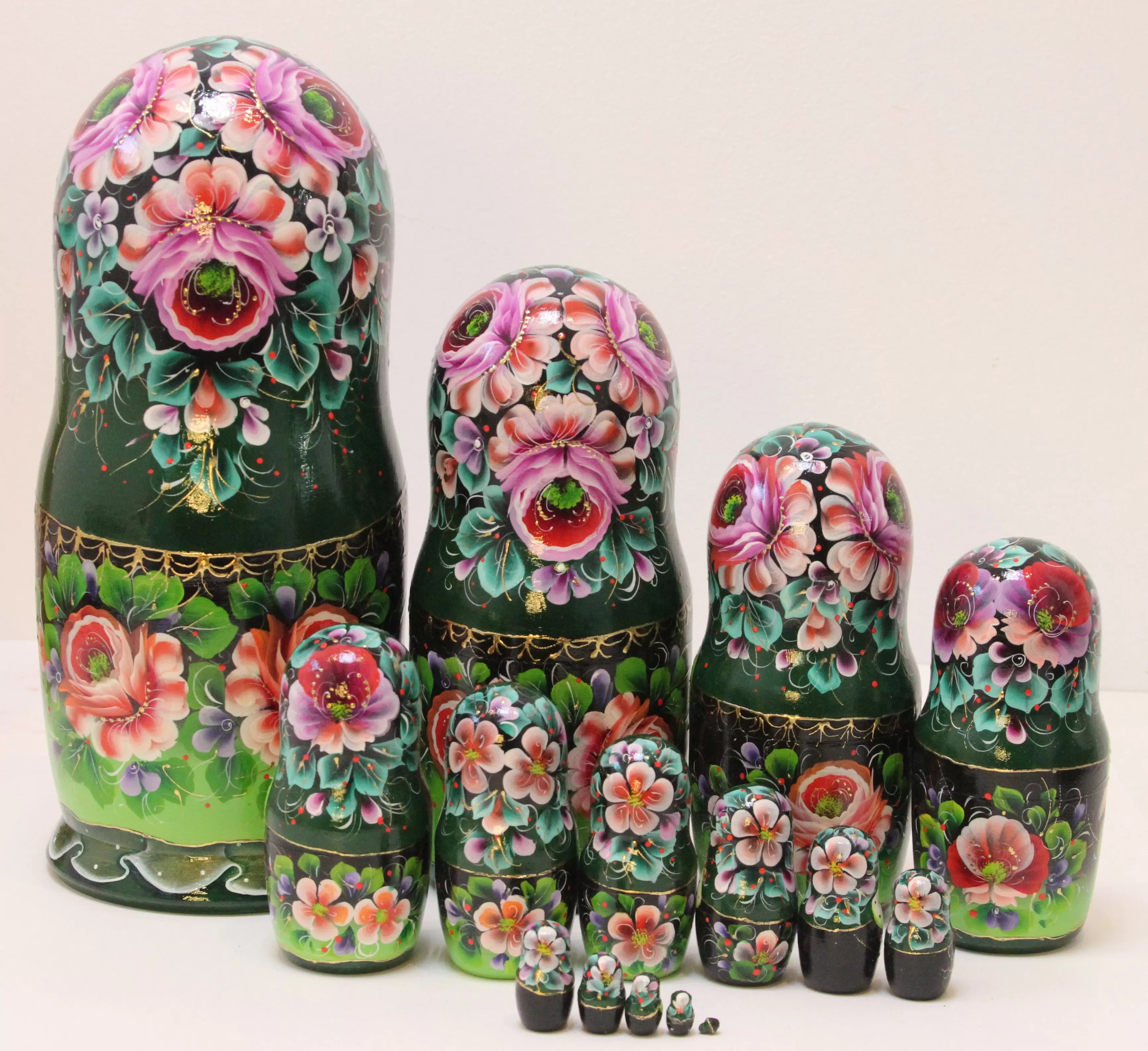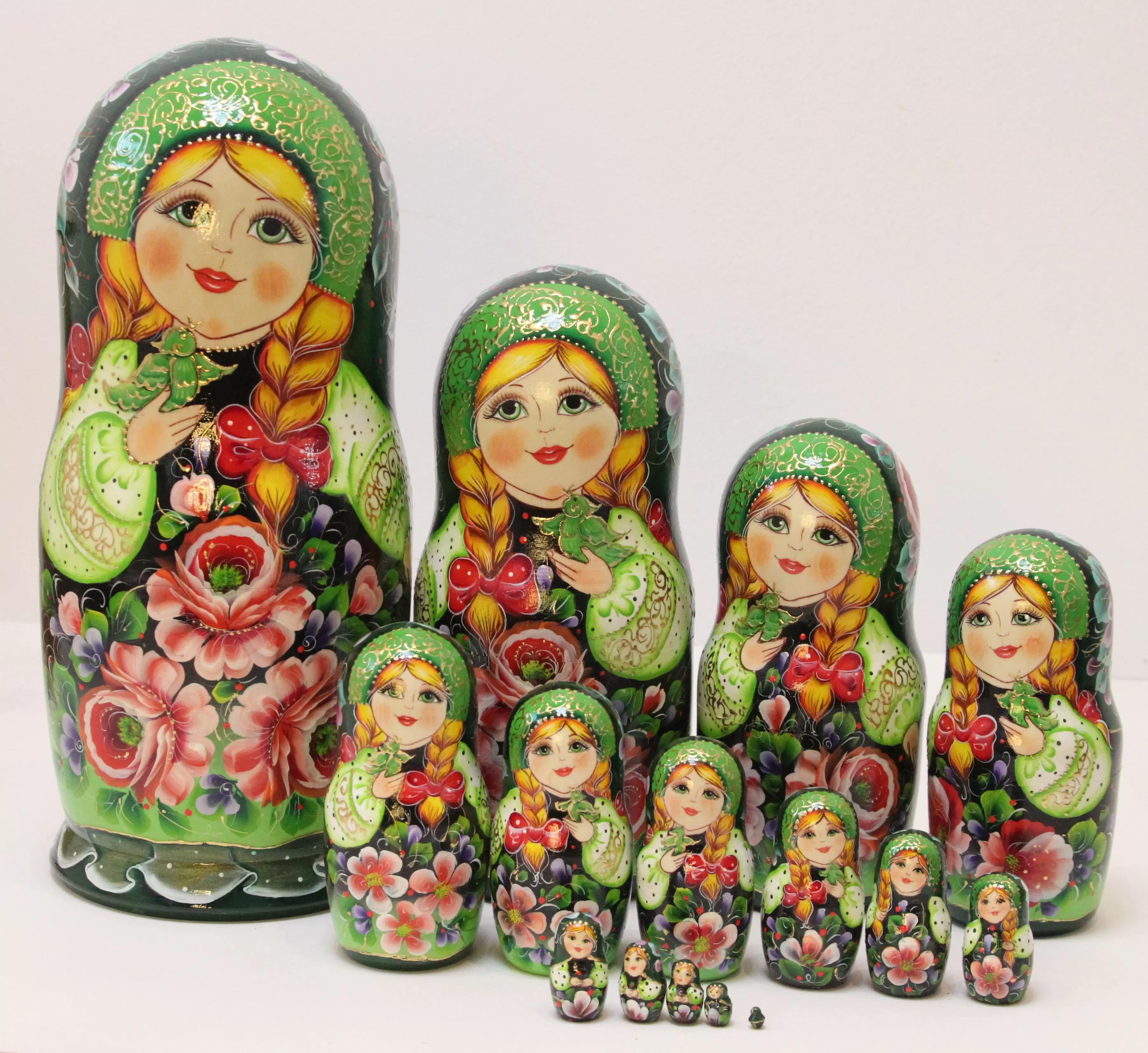 Матрешка Цветы (зеленый платок) 15м33
