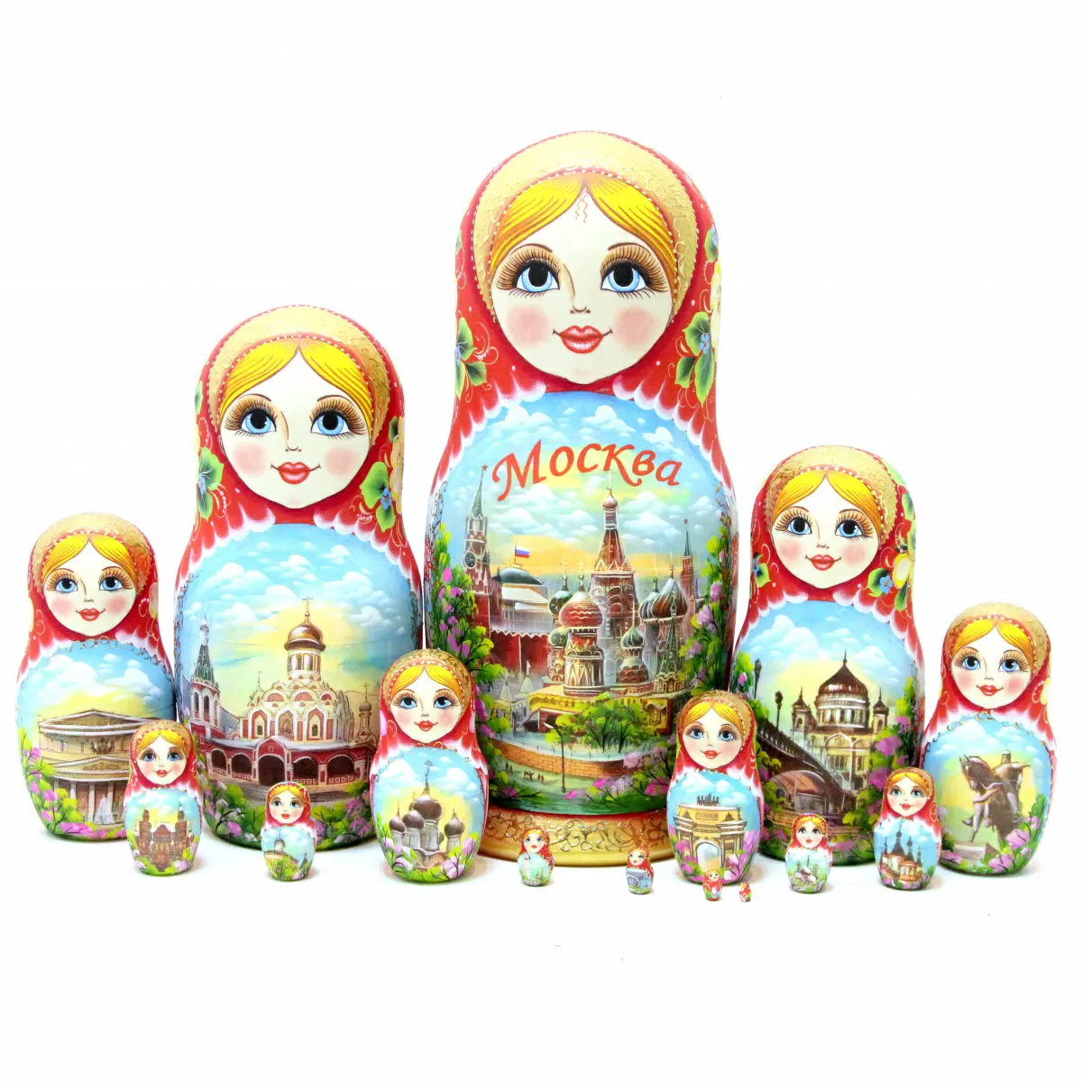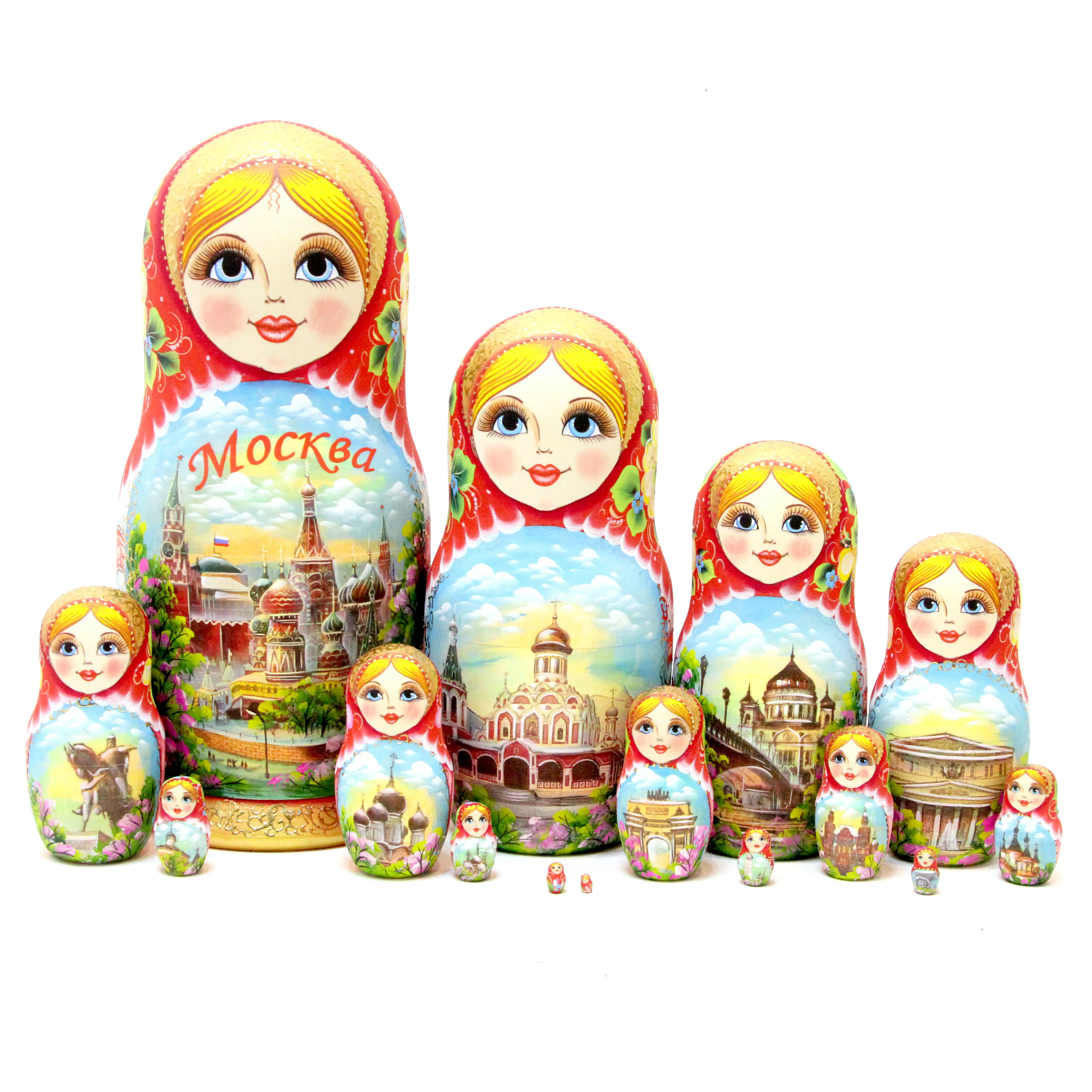 Аннотация: Матрешка Москва (красный платок, розовый низ) 15м33
