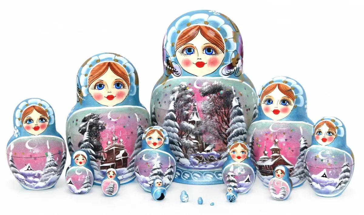Большая 15-местная матрешка с зимними пейзажами - уникальный сувенир из России, яркий образец народных промыслов. Деревянные куклы расписываются полностью вручную художниками на шатурской фабрике русских сувениров. Купить такую можно через наш сайт. Выполняем крупные оптовые заказы с доставкой в любой город.| ISBN | 15000 |
