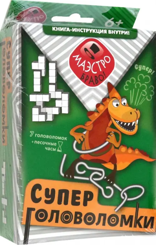 Книга-инструкция с подсказками к головоломкам, и хитрыми задачками, Двусторонний лабиринт, 3 металлические головоломки, Танграм, 2 головоломных брелока, Песочные часы